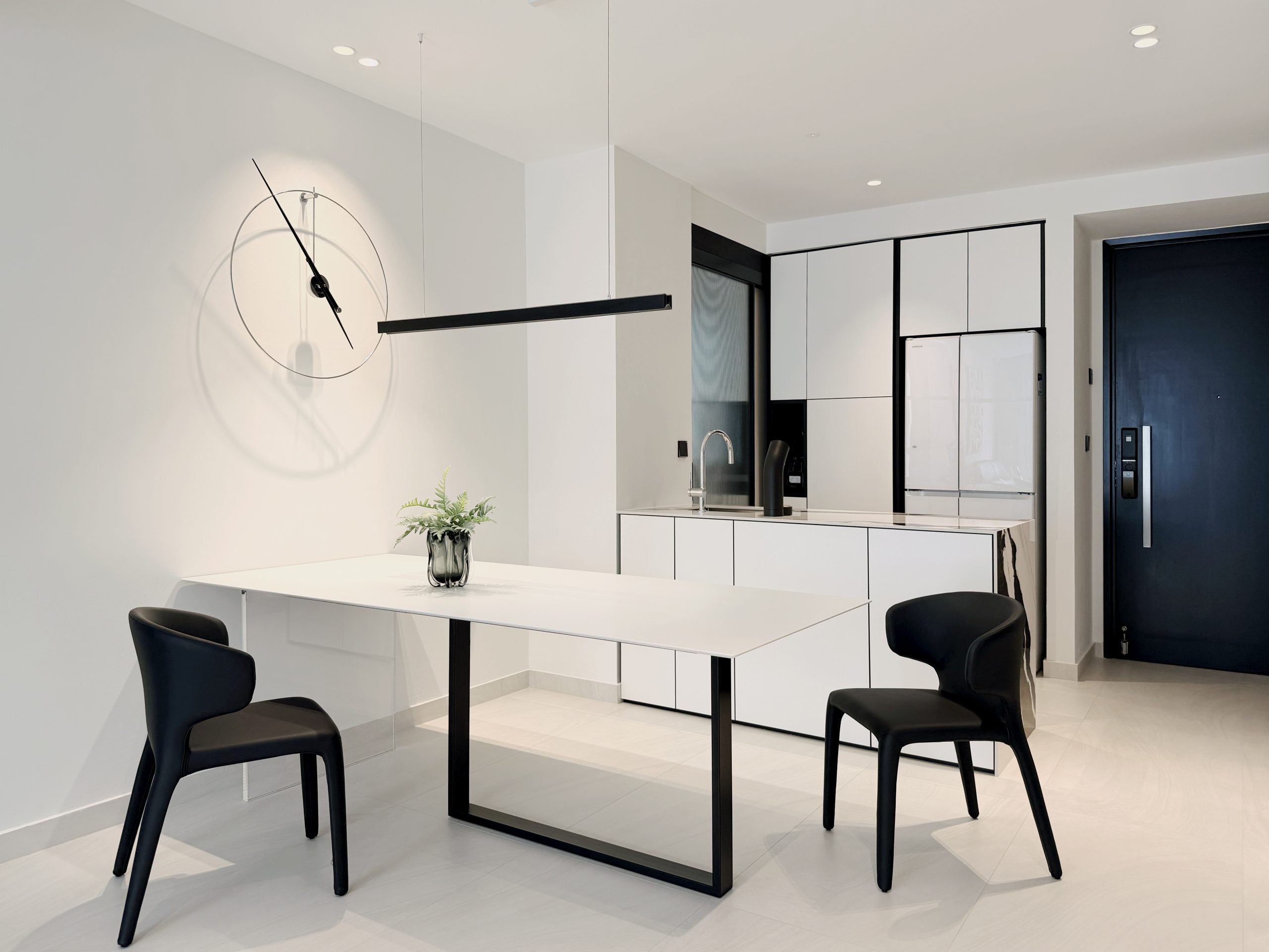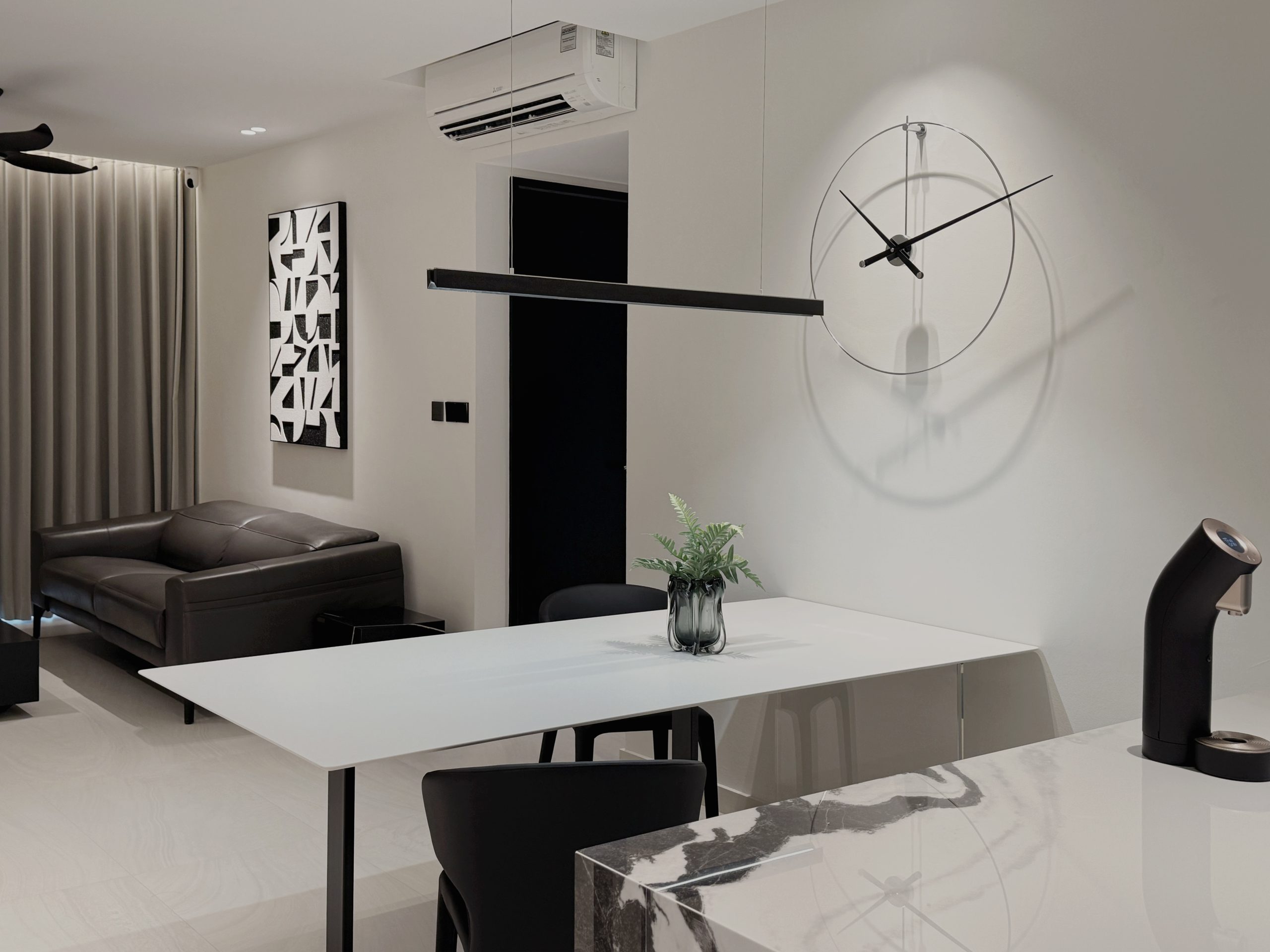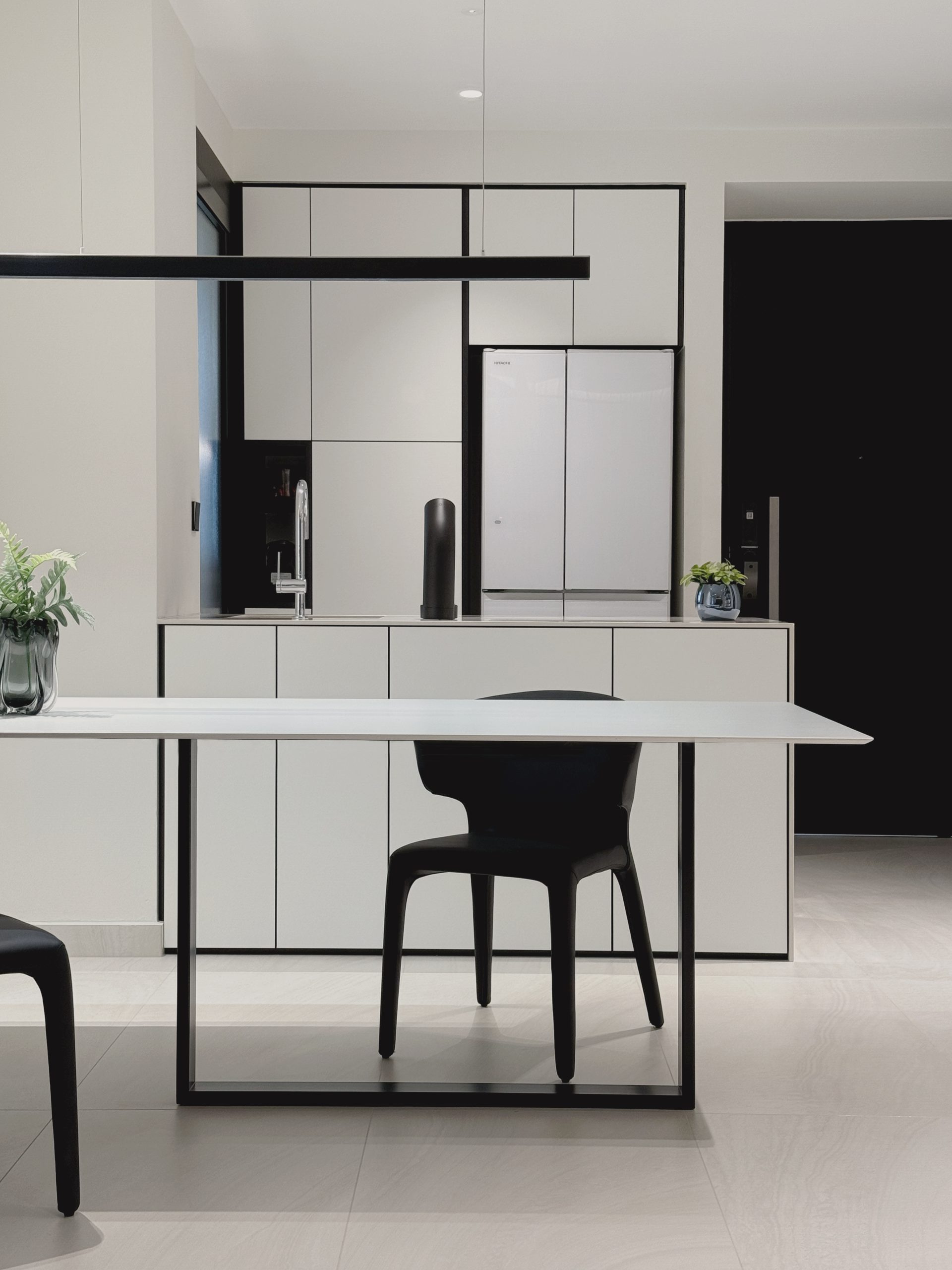 Inspired by the understated elegance of Jo Malone, this luxury residential interior design embraces a refined black-and-white palette with tailored black trimmings. Designed as a modern luxury home, the space is defined by restraint rather than excess - composed, confident, and quietly sophisticated. Like the brand itself, every detail is intentional, proving that true interior design lies in balance, precision, and timeless elegance.